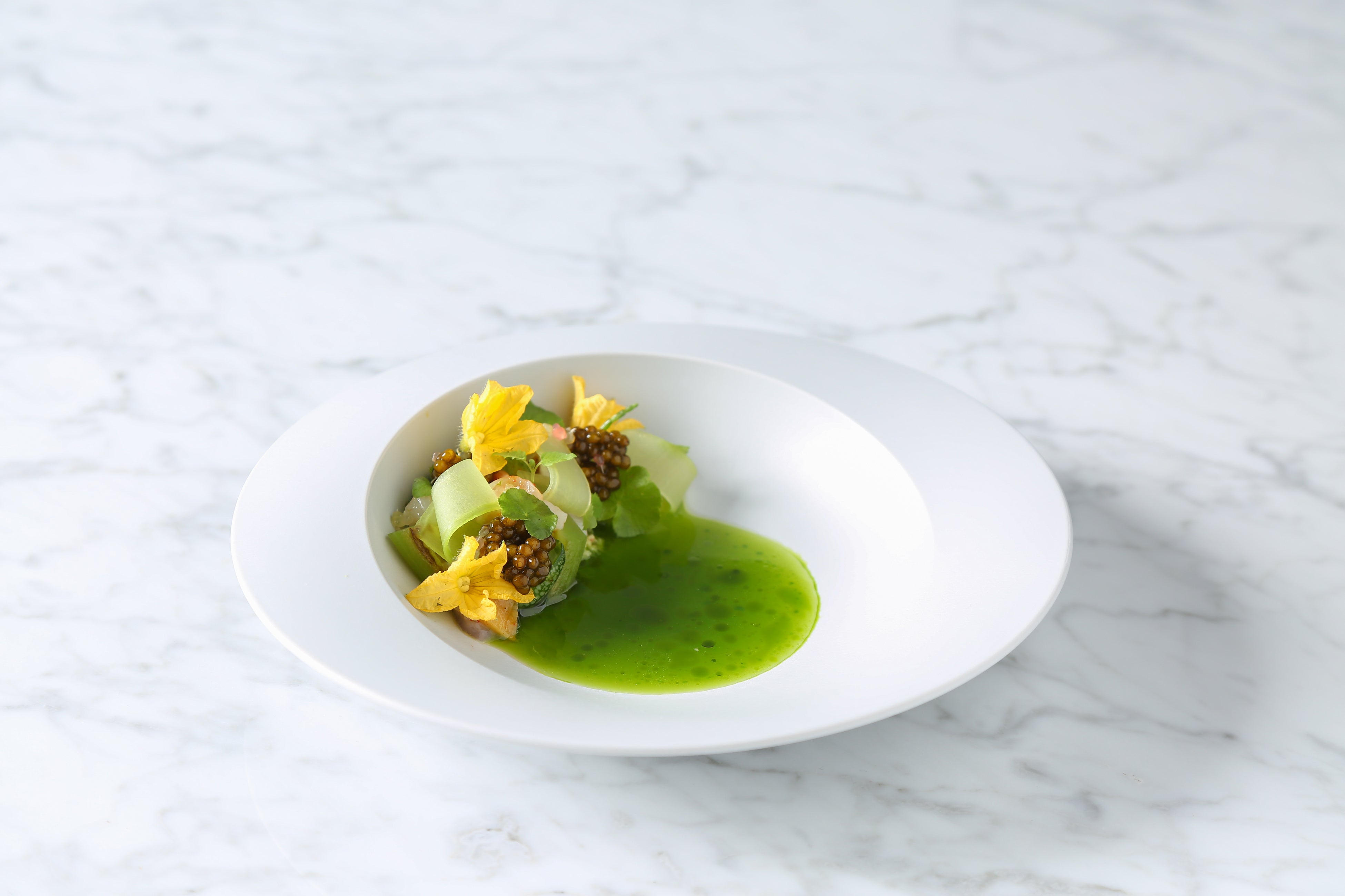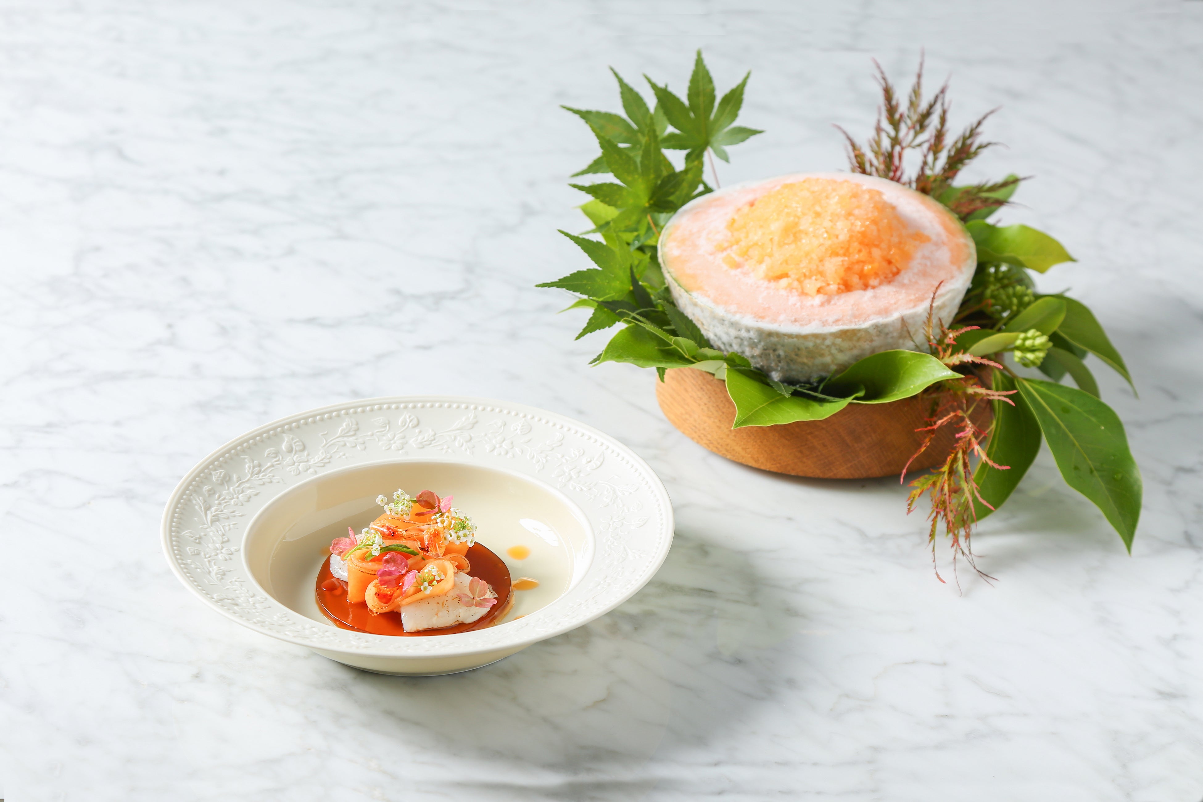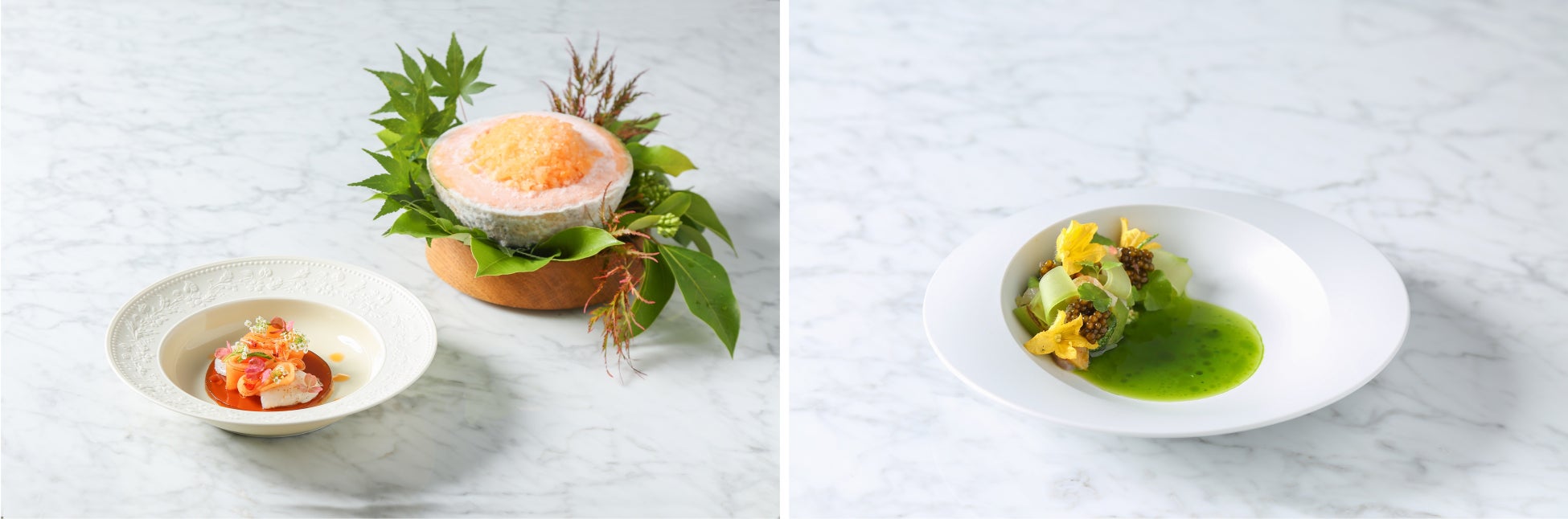 三周年に先立ち、併設するガストロノミックレストランにて、アラン・デュカス氏を招聘した特別ディナーを7月27日(木)、7月28日(金)の二日間限定で開催。大変ご好評いただいた本ディナーの中から厳選したメニューで再構成した、三周年記念プランを8月3日(木)より販売いたします。