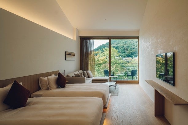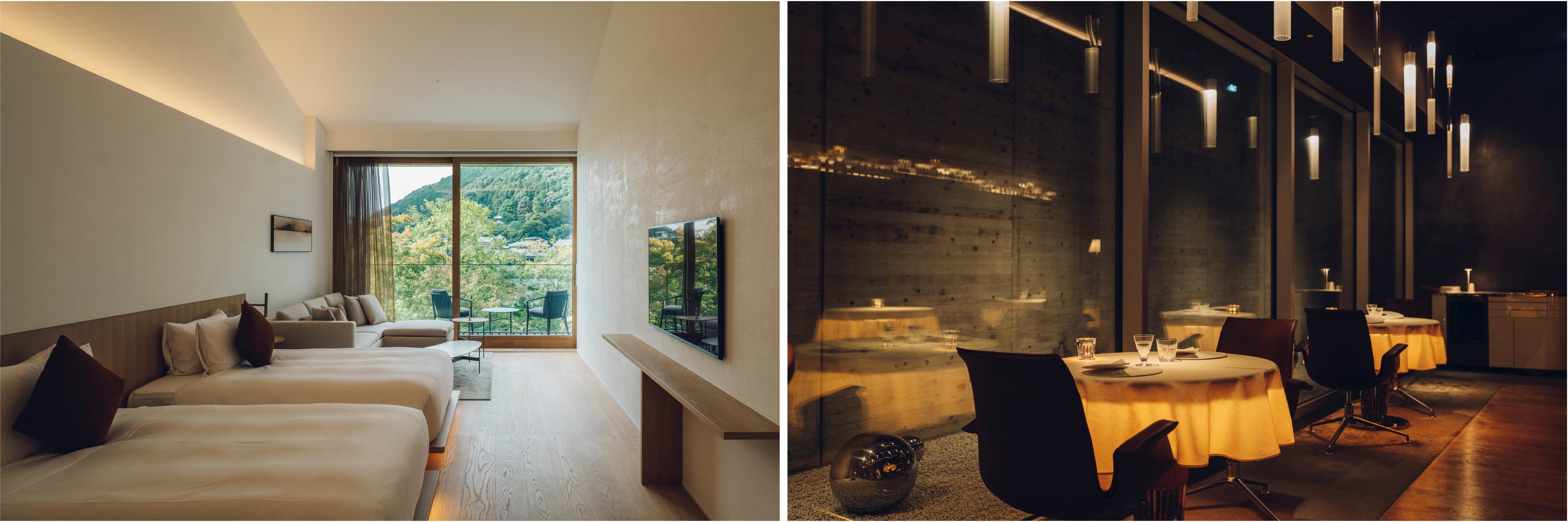 遥か遠い昔からいつの時代も人々を惹きつけてきた嵐山、渡月橋の目の前に位置しています。安田アトリエの安田幸一建築と内田デザイン研究所による「間と余白」の美しさ、「西洋と東洋」「伝統と現代」を融和した、天然素材と繊細かつミニマルな均整美で細部までこだわり抜いた居心地の良い空間や、北山杉や水尾の柚子など京都素材のオリジナルプロダクツを使ったSPA、デュカス・パリが監修する2つのフレンチレストラン「MUNI ALAIN DUCASSE」と「MUNI LA TERRASSE」を併設し、京都ならではの至高のモダンフレンチを味わうひと時をお楽しみいただけます。嵐山の自然と調和し、嵐山の歴史に新たな彩りを添える、嵐山の豊かな自然と無垢で優しい色調が調和する全21室のホテルです。