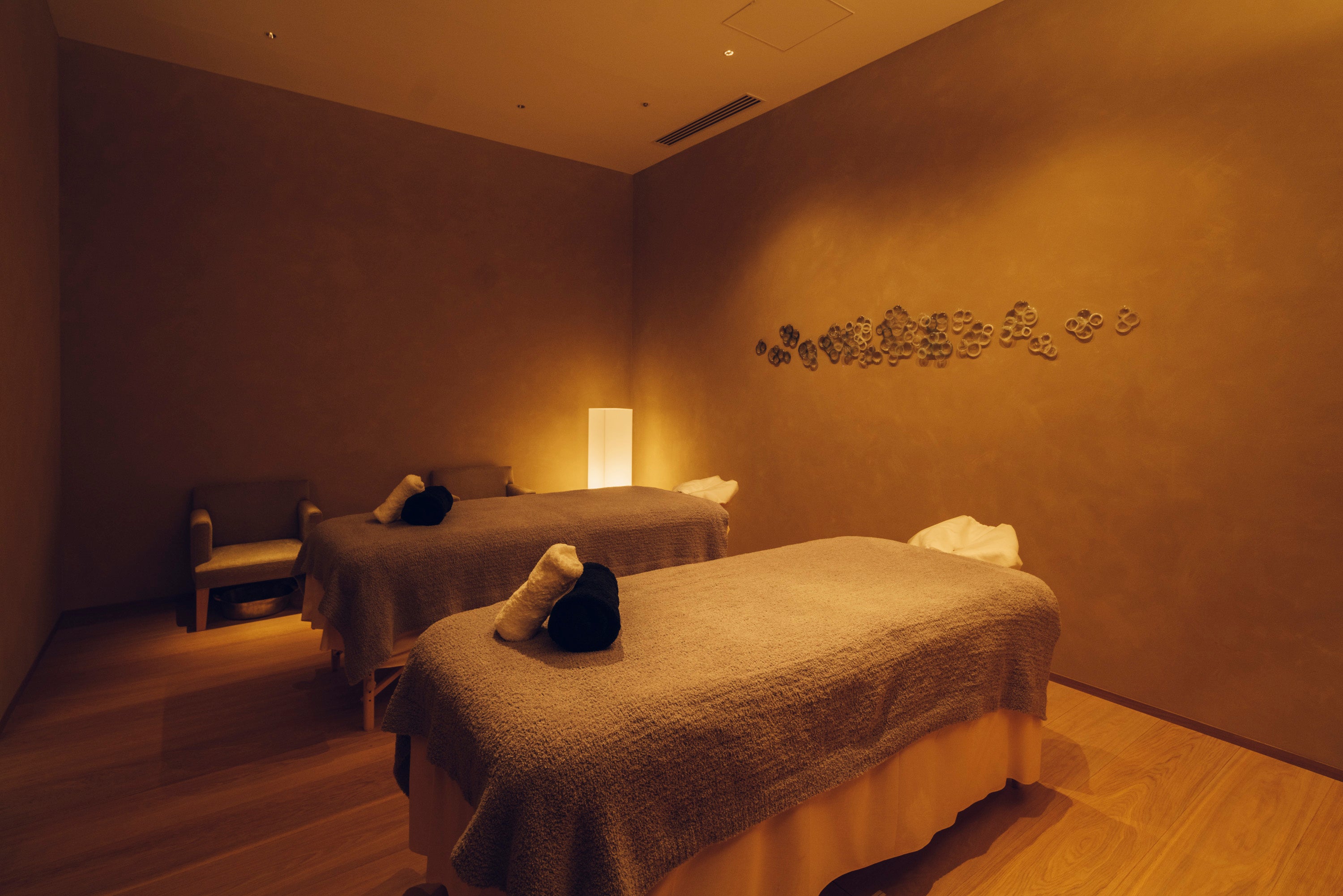 併設する「MUNI SPA」では、日本の原材料や植物を使用し、日本の伝統や文化のエッセンスを織りなした京都ならではのスパ体験を提供しています。この度の三周年を記念して、通常メニュー90分以上をご利用いただいた方へ、京都の水尾のゆずと北山杉をブレンドした「MUNI KYOTO by 温故知新」オリジナルの香りでご用意したリジナルバームやバスソルトをプレゼント。京都ならではの植物を使った香りを、嵐山の思い出としてお持ち帰り下さい。