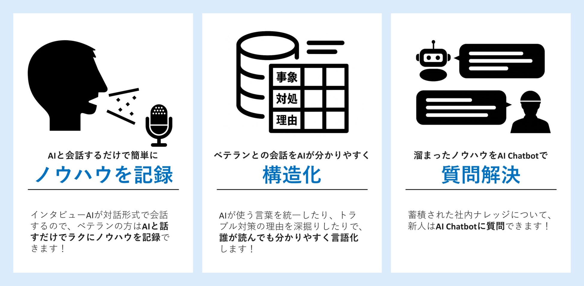 AI技術の社会実装に特化した東京大学発スタートアップ【Airion株式会社】は、製造現場における技能継承をAIで支援する、ナレッジ活用統合AIシステム『技能継承くん』のサービス提供を開始しました。