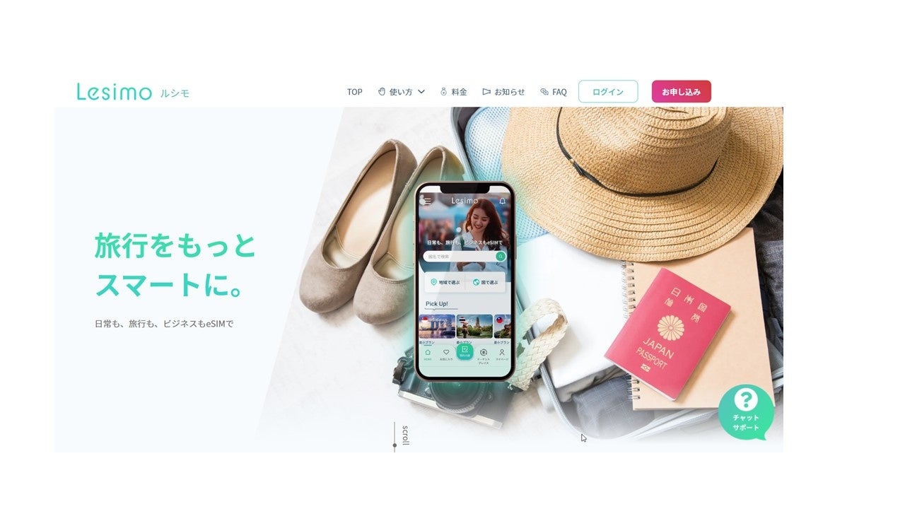 『Lesimo(ルシモ)』は、現在多くのスマートフォンが標準対応している「eSIM」向けの海外通信サービスです。物理的なSIMカードを抜き差しすることなく、web上で申し込みを行うだけで、普段お使いのスマートフォンが海外でインターネットに接続可能になります。