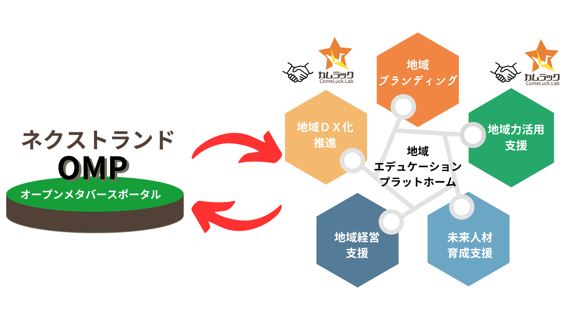株式会社アシス(佐賀県多久市、代表取締役:笹川俊一 以下「当社」)は、この度、株式会社カムラック (福岡県福岡市、代表取締役 賀村 研、以下「カムラック社」)とともに当社が開発した直感型メタバース “Open Metaverse Portal”(以下「OMP」)において、障がい者への役務創出を目的としたOMPプログラム開発・更新作業やデザイン業務、今後展開する地域物産の新規販路における就労支援などを推進・加速化していくため、提携することとなりました。