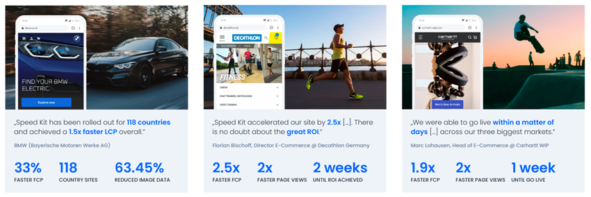 既に欧州を中心に10,000以上のウェブサイトで採用されており急拡大中のSpeed Kitは、自動車、ラグジュアリーブランド、各種専門店、デパート、スーパーマーケット、家電量販店、Eコマース、飲食店、金融、保険などありとあらゆる業界、企業のウェブサイトを高速化可能です。
