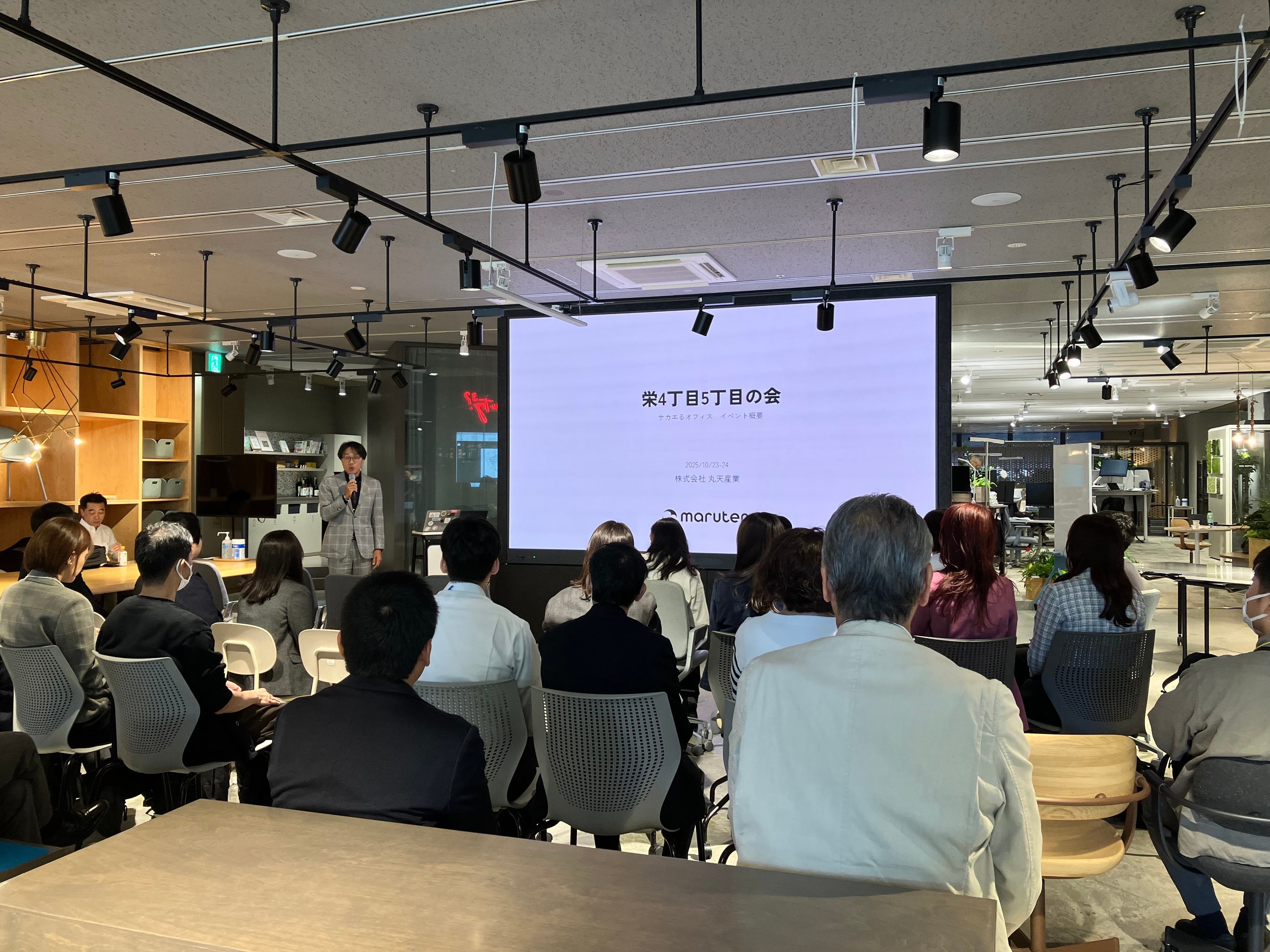 株式会社丸天産業(本社:愛知県名古屋市、代表取締役:天野敬之)は、2025 年10月23 日24日に名古屋市中区栄4丁目・5丁目に拠点を構える家具メーカー3社と連携し、地域の企業を対象にしたオフィスツアーと意見交換会を実施しました。2日間で24社47名が参加し、地域の魅力と企業の取り組みを体感する機会となりました。