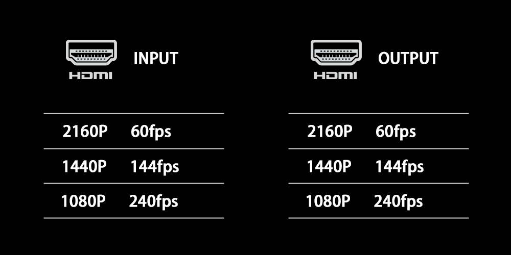 ■豊富な入出力に対応(2160P/60fps、1440P/144fps、1080P/240fps)