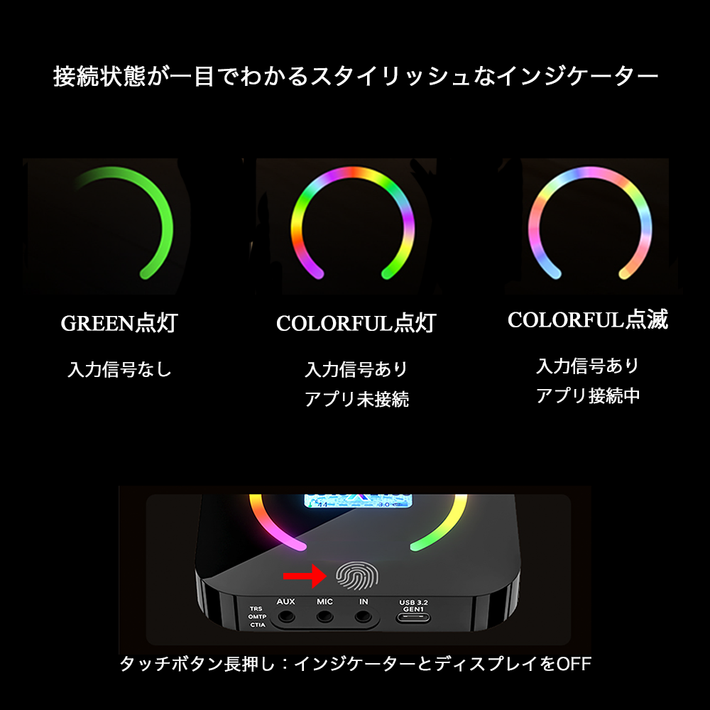 接続状態が一目でわかるスタイリッシュなインジケーターとディスプレイ