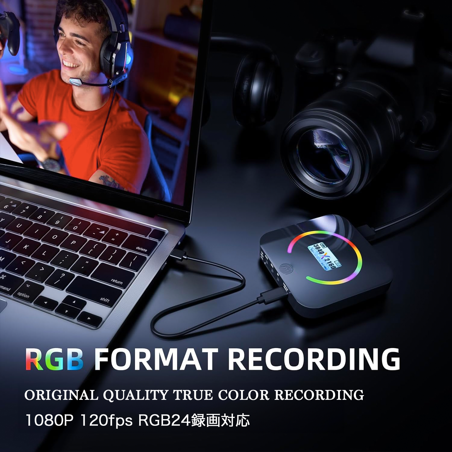 RGB24(1080P/120fps)でキャプチャー可能。オリジナルの高画質をそのままPCで録画できます。