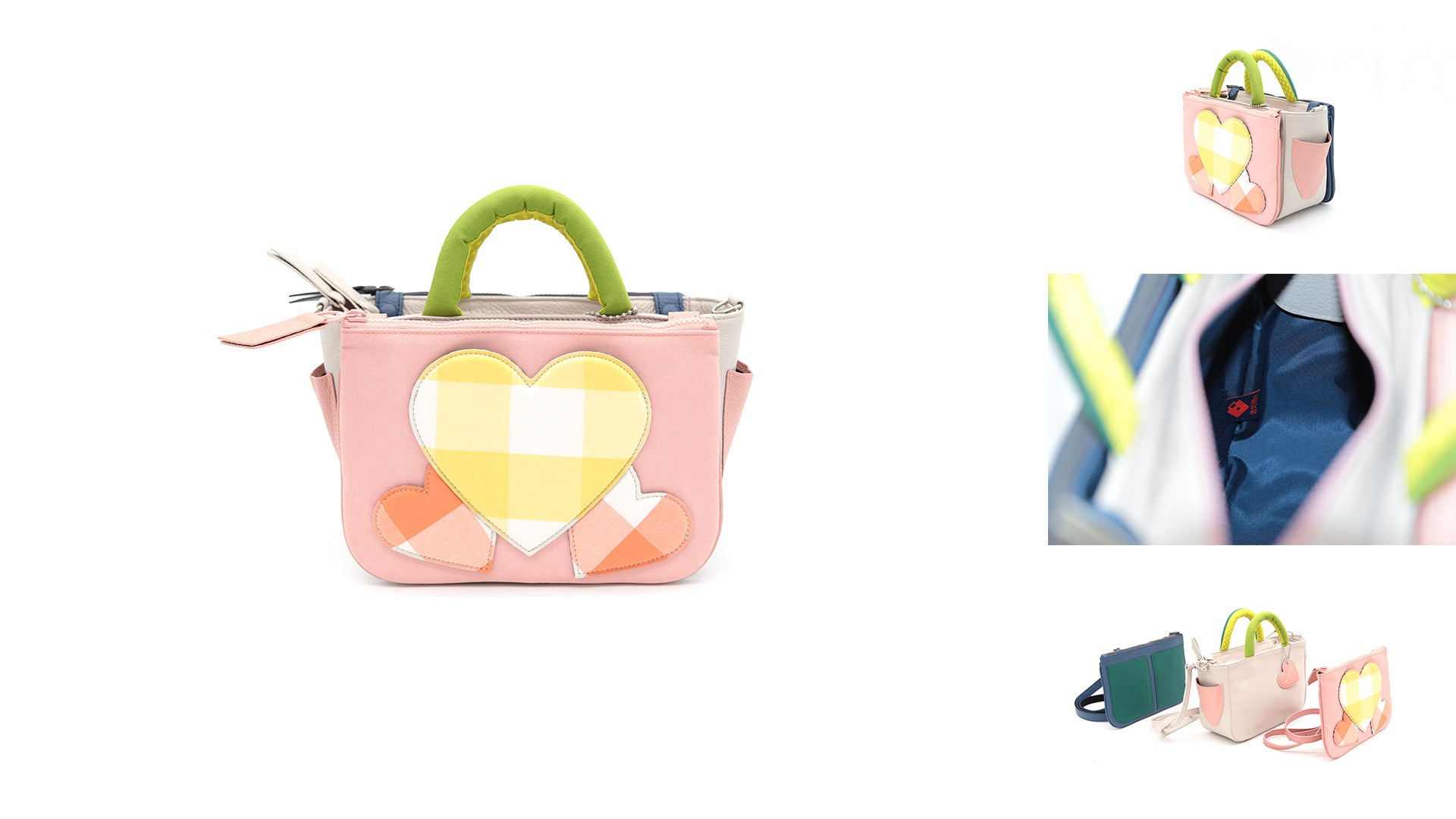 「家族3人で使う」という可愛らしいコンセプトのもと、見る面によって印象が変わるデザインを形にしました。おもて面のハートは中にウレタンを仕込んで少しふっくらとさせました。両面のポケットは、外してショルダーバッグにもできるように改良しています。1つの鞄を、家族3人でいっしょに使えるように。これからの家族の思い出の中に、この鞄がいることができたら、とても嬉しいです。