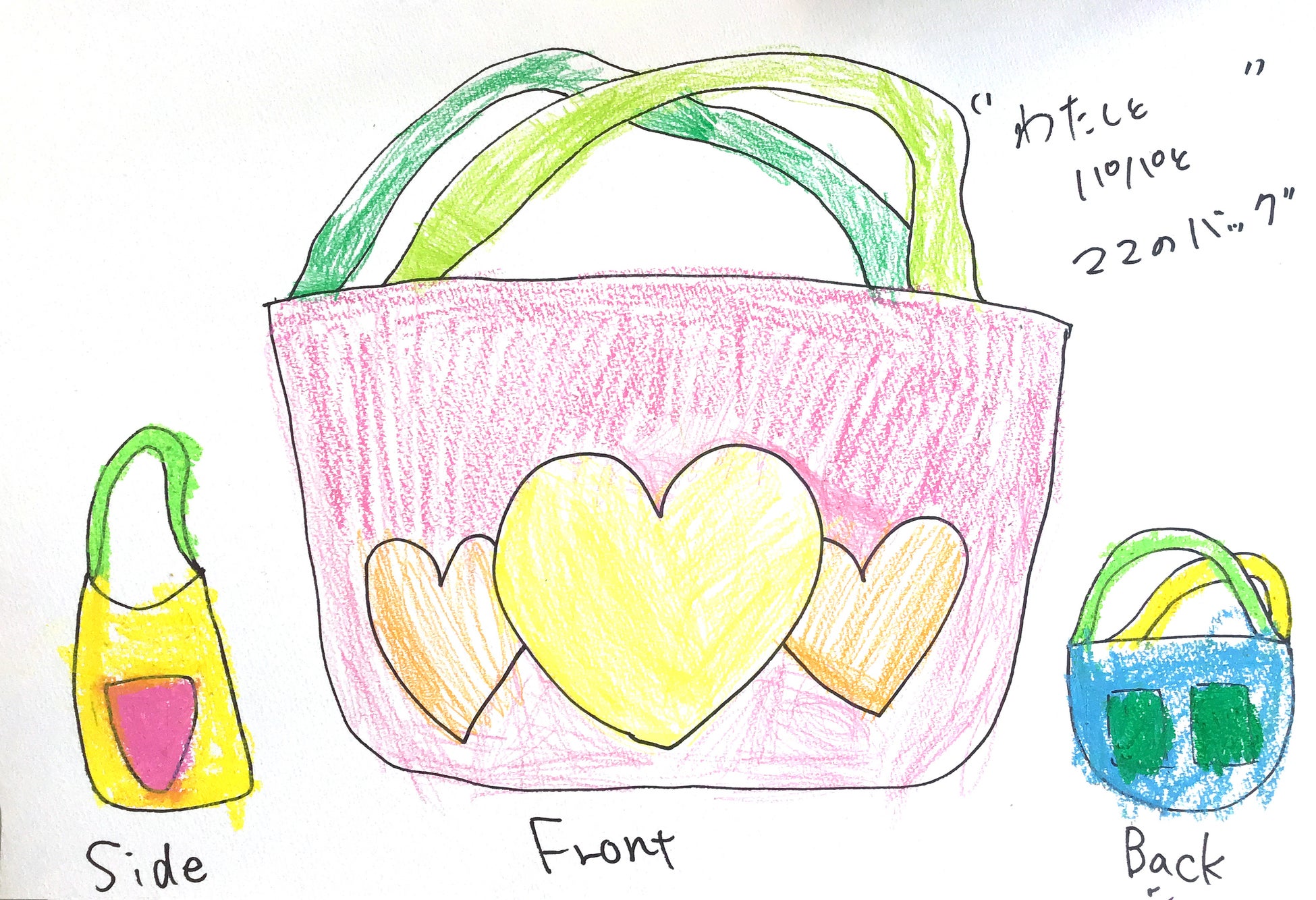 受賞理由:今までたくさん鞄を作ってきましたが、見たことのないデザインと、せっかく作るならユニークな物を作りたいと思い、この作品を選びました。実際にデザインを書いたお子様やご家族にお会いし、デザインの思いや考えが伝わり、なるべくご希望に添った鞄を製作し喜んでいただけるように頑張ろうと考えました。