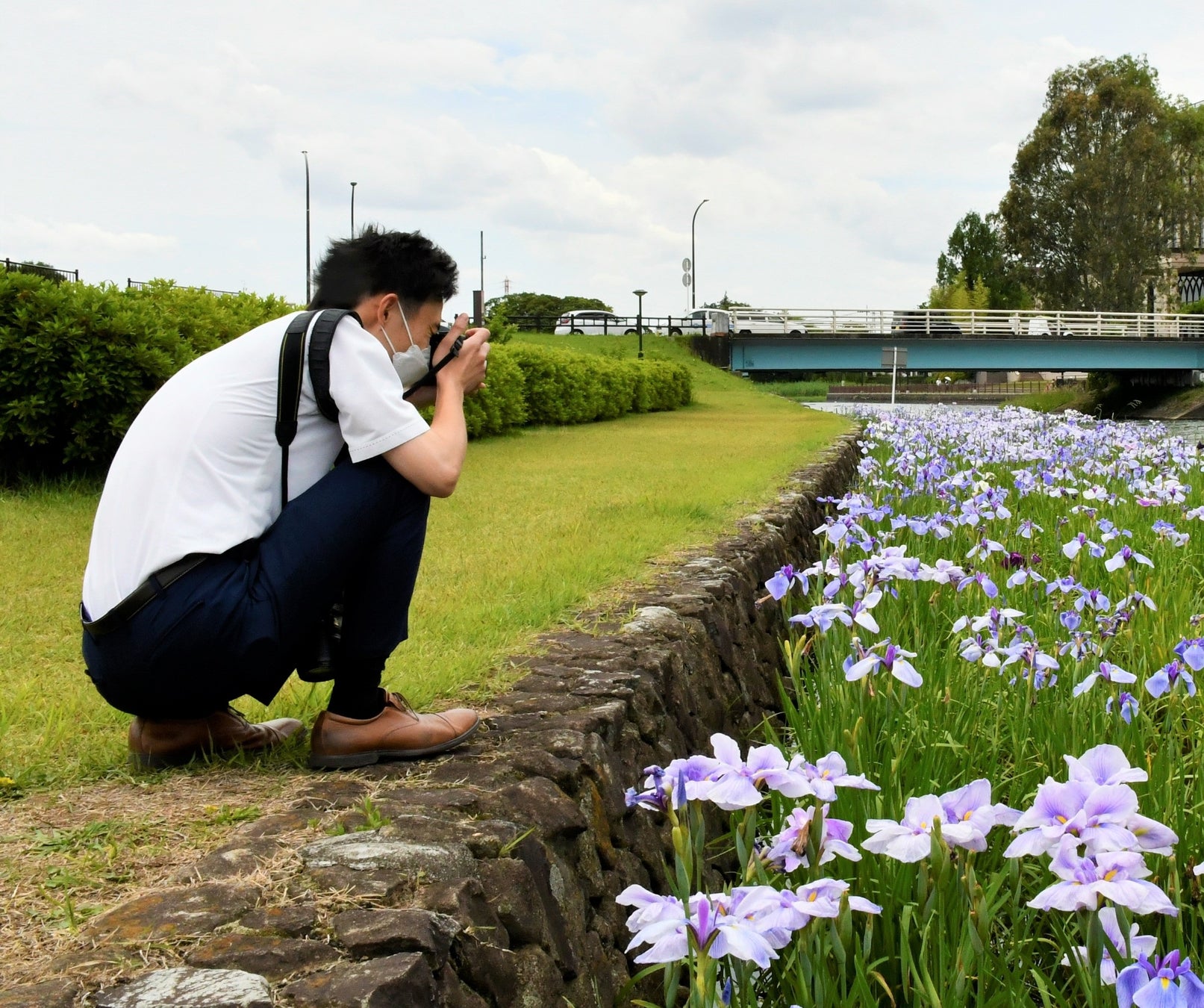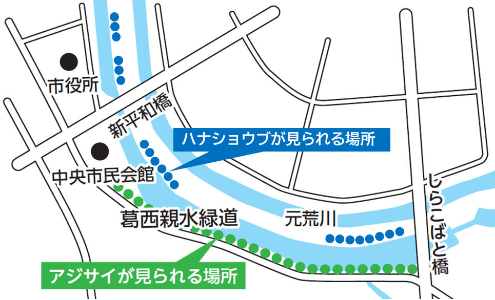越谷市役所の北側からしらこばと橋にかけて、綺麗なハナショウブが広がっています。散歩中のご夫婦は「アジサイも良いけどハナショウブも綺麗。青みがかった紫色のハナショウブを見ると梅雨が来たなと思う。」と話していました。