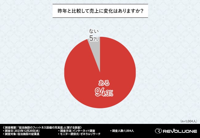 はじめに「昨年と比較して売上に変化はありますか?」と質問したところ、約9割の方が『ある(94.3%)』と回答しました。