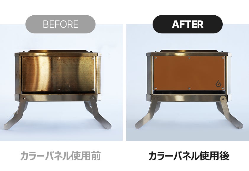 初回使用時はカラーパネルなしで使用し、ステンレスに変色が生じた場合は、カラーパネルに付け替えて新品のような焚火台として使用できます。