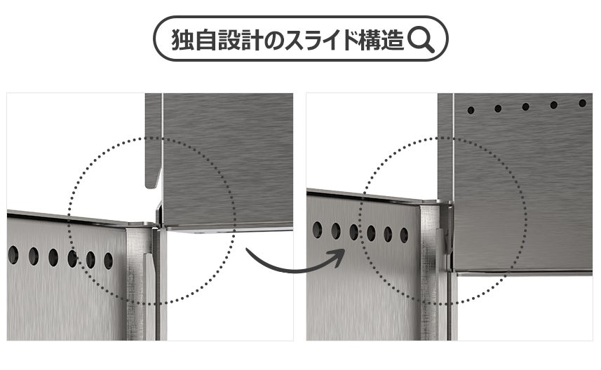 3次燃焼パネルの内側に溝とフックがあり、差し込むだけのスライド構造で簡単に組み立てができます。
