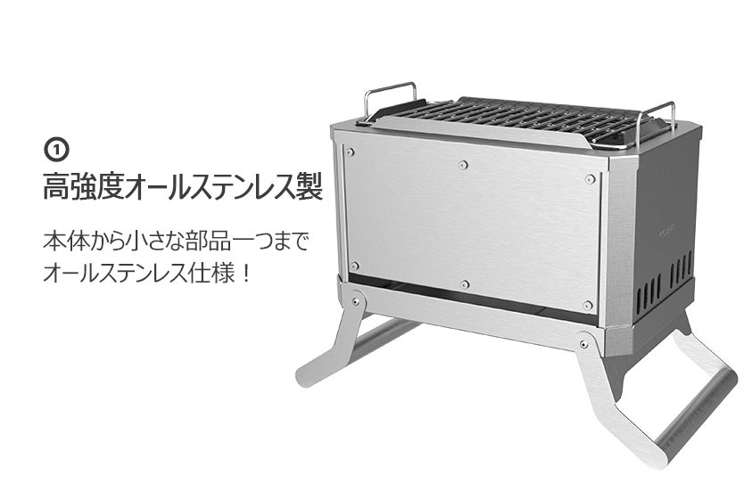 専用グリルが付属しているので、バーベキューから鍋料理、ダッチオーブンまで幅広い焚き火料理をお楽しみいただけます。