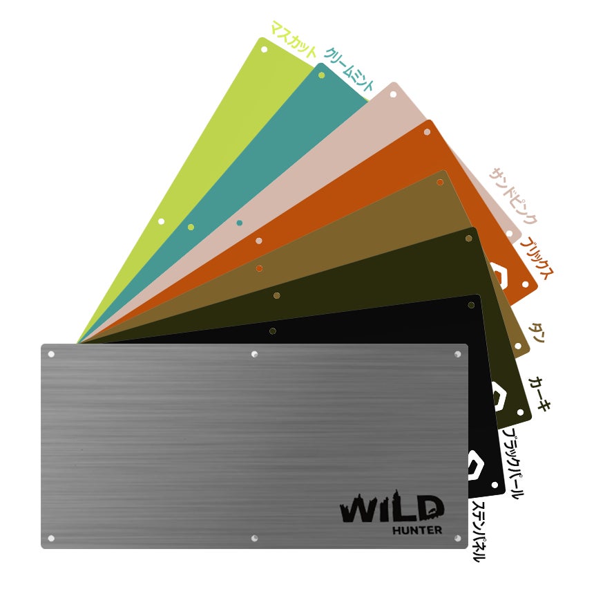 最初から付属されているステンパネルの他に、オプションでカラーパネルでアレンジ可能。カラーは全部で7色。自分のタープやテントに合わせてカスタマイズできます。