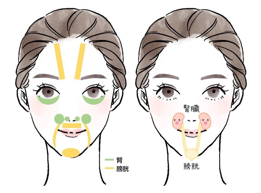 足裏マッサージなどで刺激する反射区は顔にもあります。顔の中に臓器があると考えるとよいでしょう。