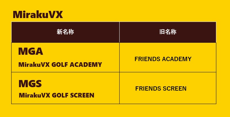 「MGA [MirakuVX GOLF ACADEMY] 」、「MGS [MirakuVX GOLF SCREEN] 」