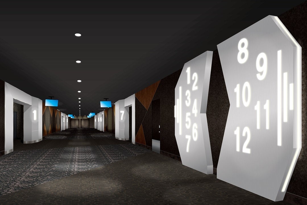 1面350インチのスクリーンを3面配置することで大迫力かつ多彩な表現が可能となり、また通常のシネマとは違った重低音や高音域の再現に優れたスピーカーとカスタマイズされたデジタル音響システムで、音楽ライブやミュージカルなどの舞台演劇、サッカーをはじめとするスポーツなどが、まるでそこにいるかのような最高の臨場感で体感頂けます。