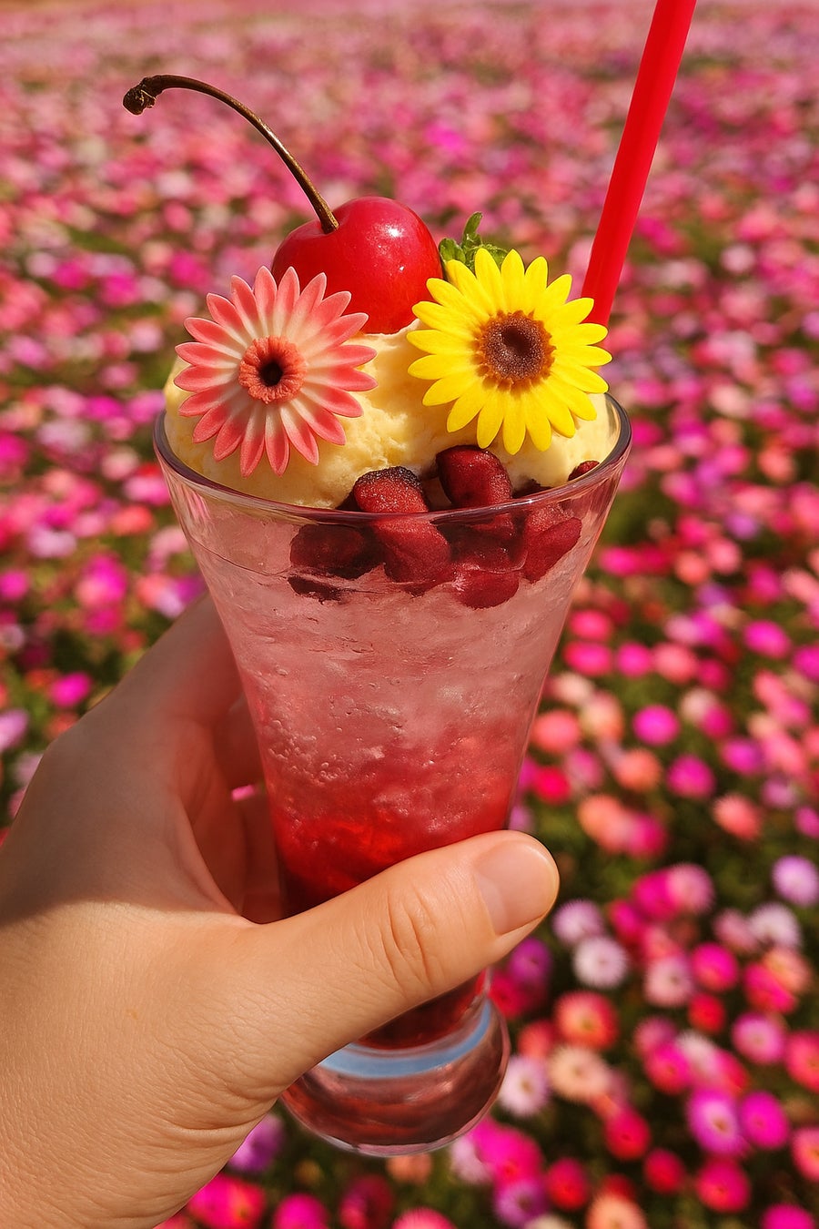 ピンク、オレンジ、黄色、白——鮮やかな色彩の花たちは、陽の光に導かれながら咲き誇り、高原の斜面を明るく染め上げていきます。