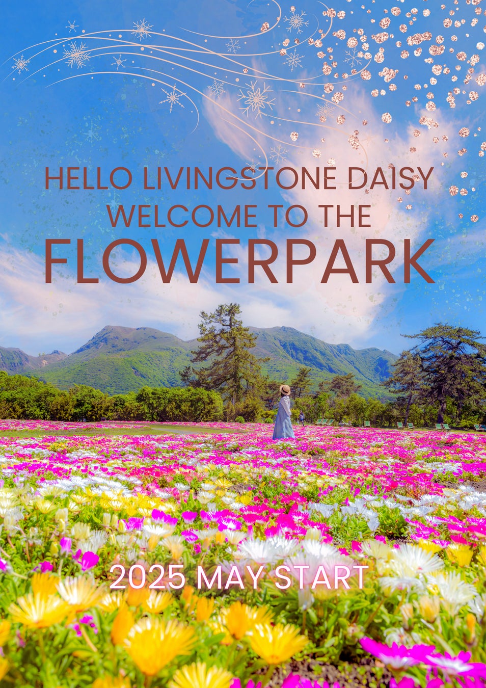 大分県竹田市のくじゅう花公園では、園内最大の花畑「高原の彩(いろどり)」にて、約7万株・7,000㎡のリビングストンデイジーが、5月を通して見頃を迎えます。