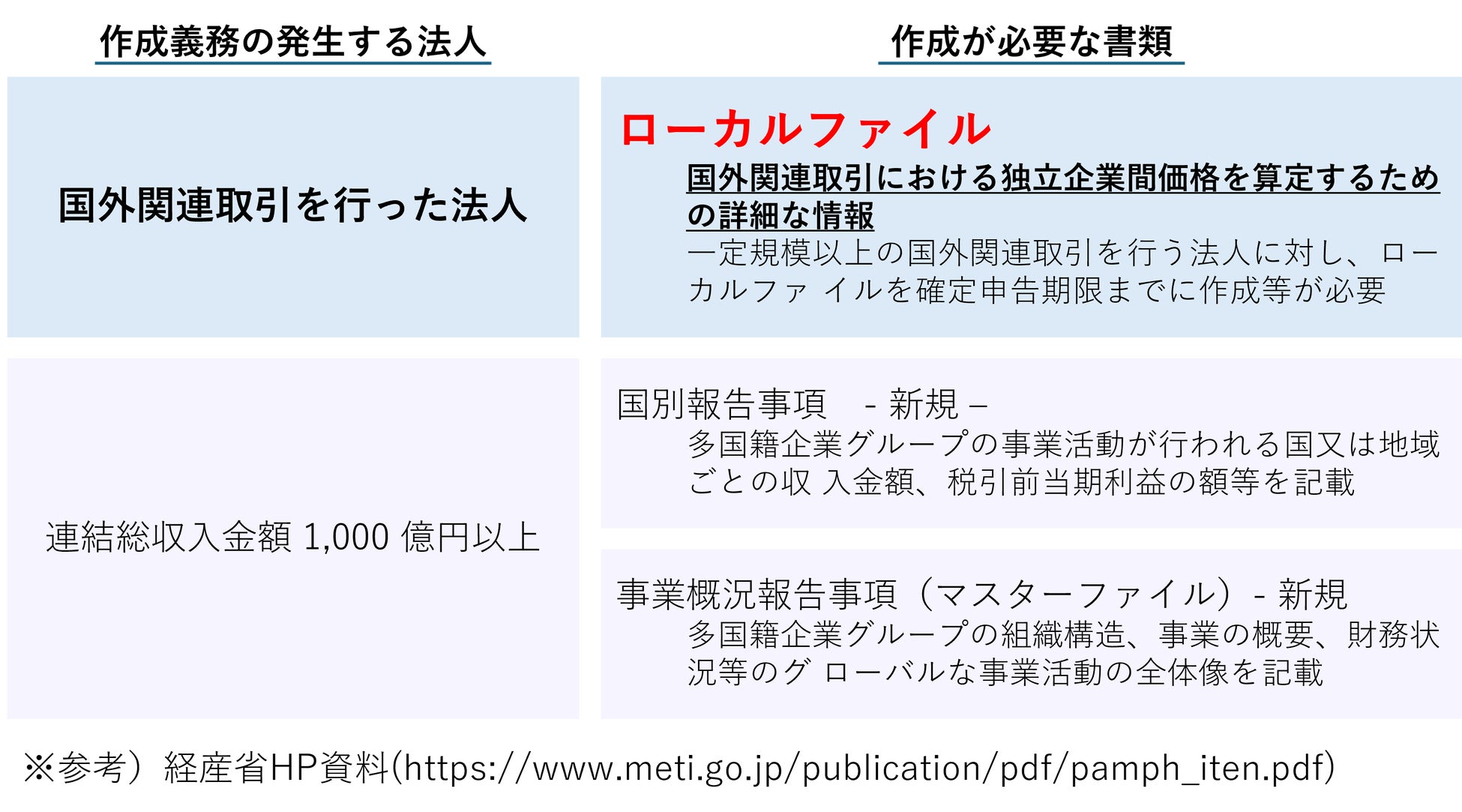である法人は、当該国外関連取引に係る独立企業間価格を算定するために必要と認められる書類を確定申告書の提出期限までに作成又は取得し、保存しておく必要があります。