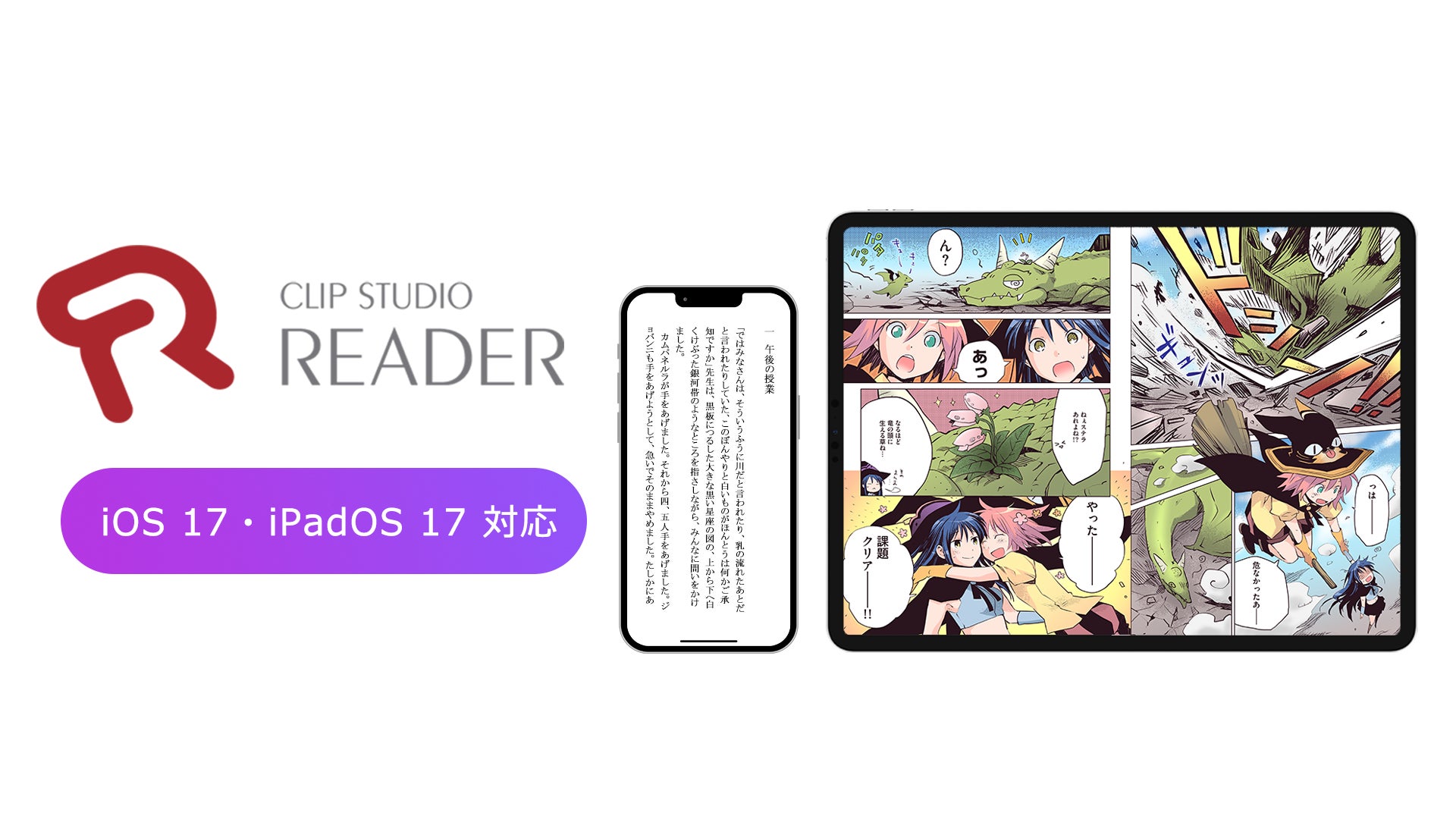 株式会社&DC3が提供する電子書籍ビューア「CLIP STUDIO READER」は、Apple社より提供が開始されたiPhone向けの最新OS「iOS 17」、iPad向けの最新OS「iPadOS 17」に対応いたしました。