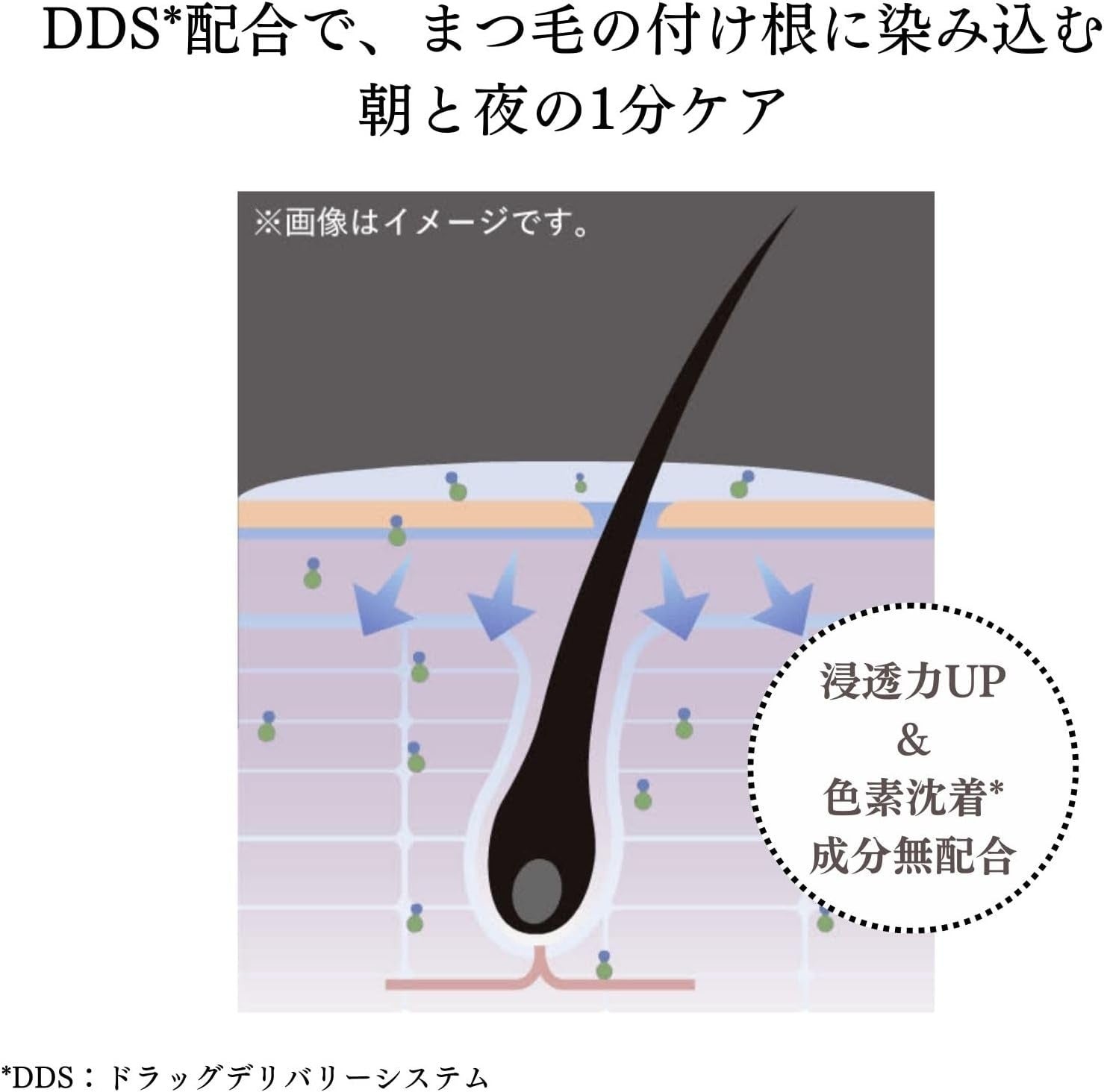 また、30種類の保湿成分を適切に配合設計し、独自の最新浸透技術(ドラッグデリバリーシステム: DDS)と組み合わせることで、従来の技術では浸透しづらかった水溶性機能成分を効果的に角質層まで浸透させることを実現しています。朝夜1日2回、これまでになかったハリとコシ、潤いのあるまつ毛へと導き、華やかな目元を実現します。
