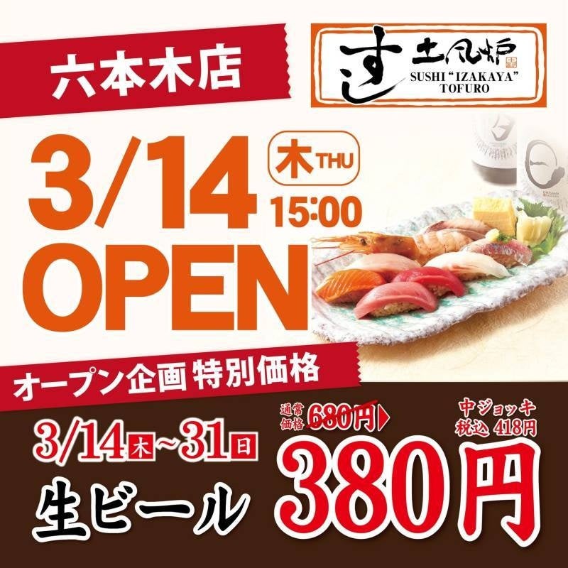 3月14日 土風炉六本木店が「すし居酒屋土風炉」としての新たな旅をスタート!