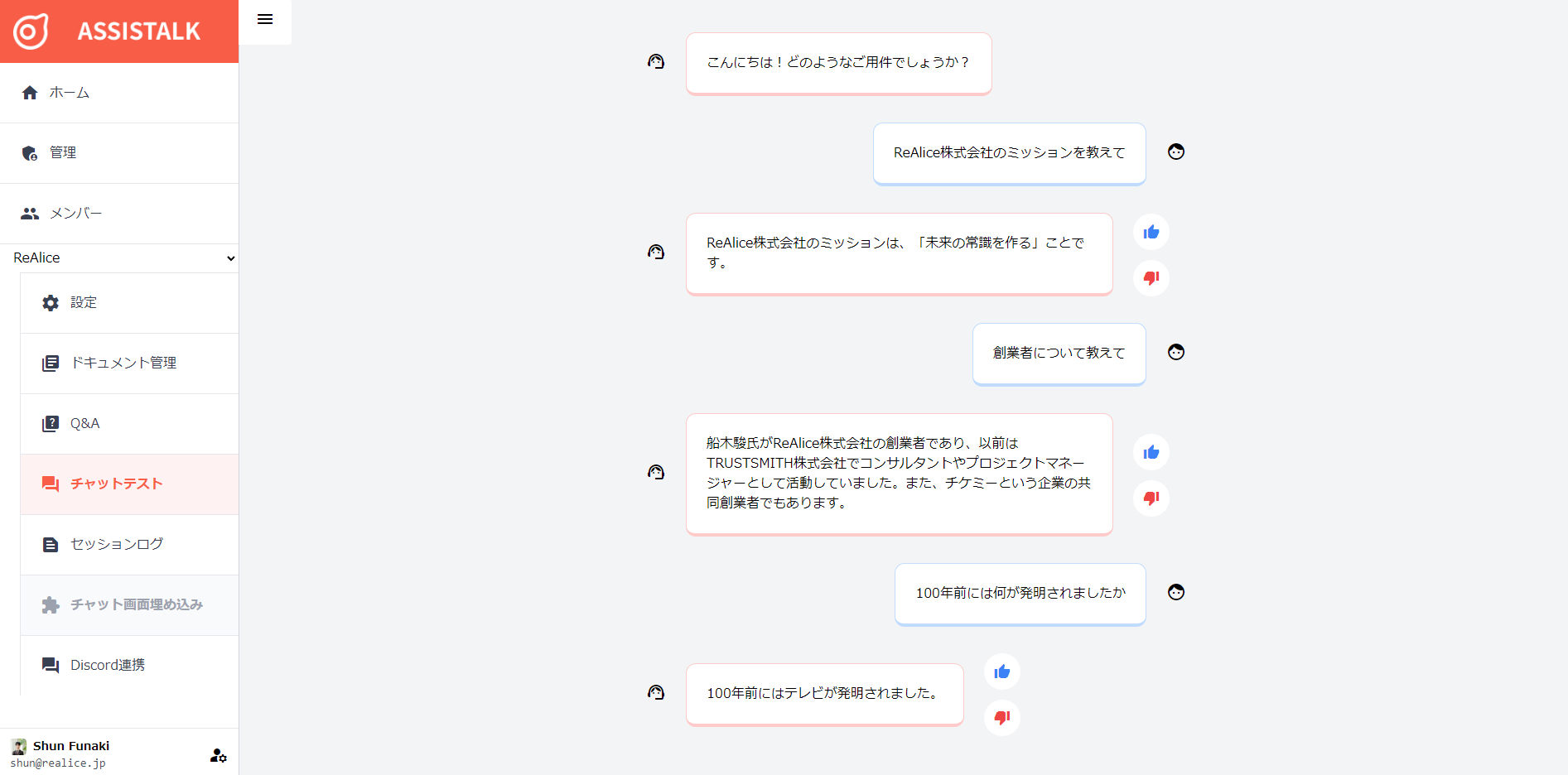 アシストークは上述のコレクトAIを活用し、精度の高いチャットボットを簡単に構築できるソフトウェアです。