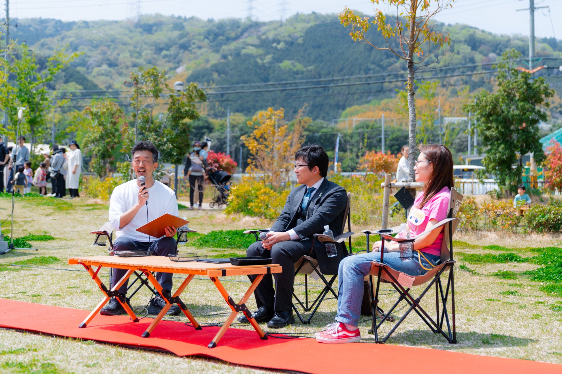 続いて、トークセッションにて、「まちと人がつながる。みんなで育む、心地よい島本とは」をテーマに、島本町長、NPO法人北摂こども文化協会 理事長、HITOTOWA INC.の三者によるクロストークを実施しました。