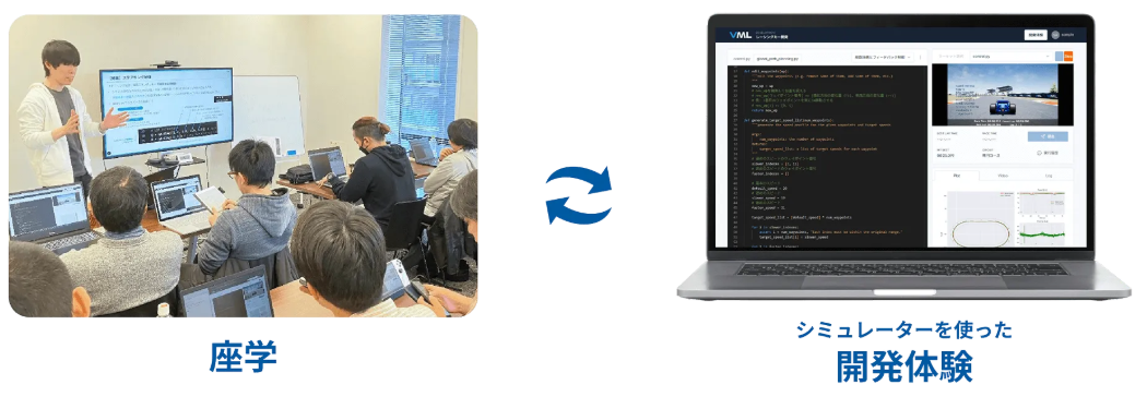 VMLは自動運転・制御系エンジニア育成用レース形式シミュレーターと自動車・モビリティ領域に特化した研修プログラムを提供しています。本研修は自動車メーカーからサプライヤーの技術者を中心に、幅広くご利用いただいております。