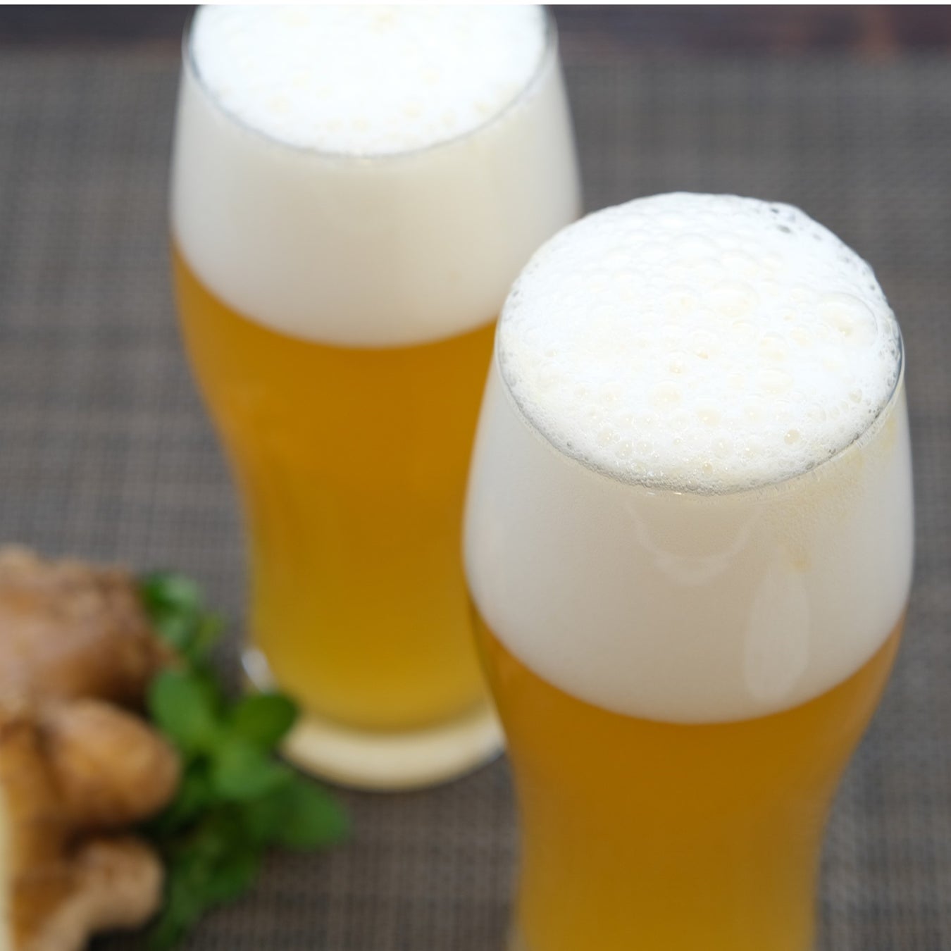 あらごしジンジャーを入れたグラスにビールを注ぐだけで完成するあらごしシャンディガフは、しょうがのスパイシーさとビールの苦みが調和した爽快な味わいです。