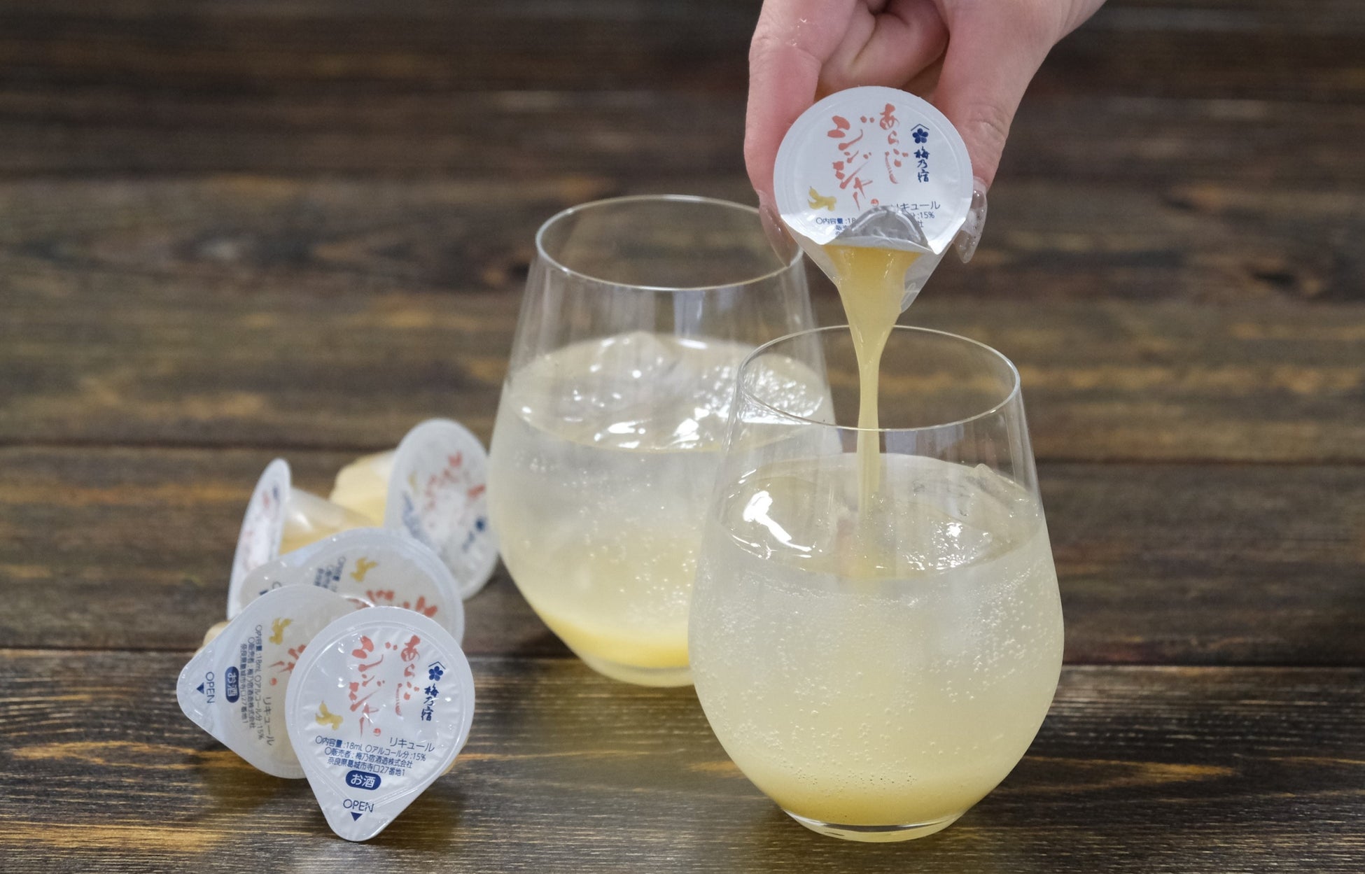 梅乃宿 あらごしジンジャーは、割材を使用して楽しむことを想定した特徴を持っているため、今回のポーションタイプに最適なアイテムとなっております。