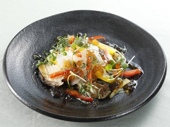 やわらかい煮あわびを野菜たっぷりのカルパッチョで。紫蘇の香りも広がります。