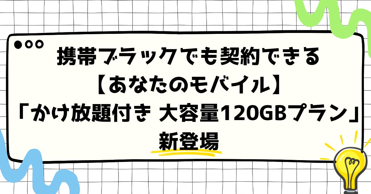 審査なし携帯【あなたのモバイル】 新プラン 「かけ放題付き 大容量120GBプラン」が登場