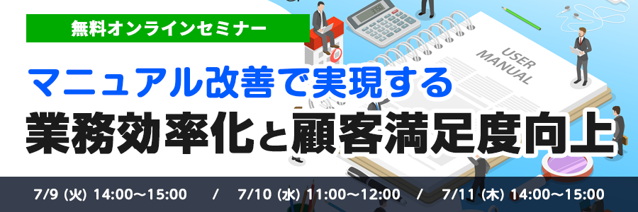 【無料オンラインセミナー(7/9~11)】マニュアル改善で実現する業務効率化と顧客満足度向上