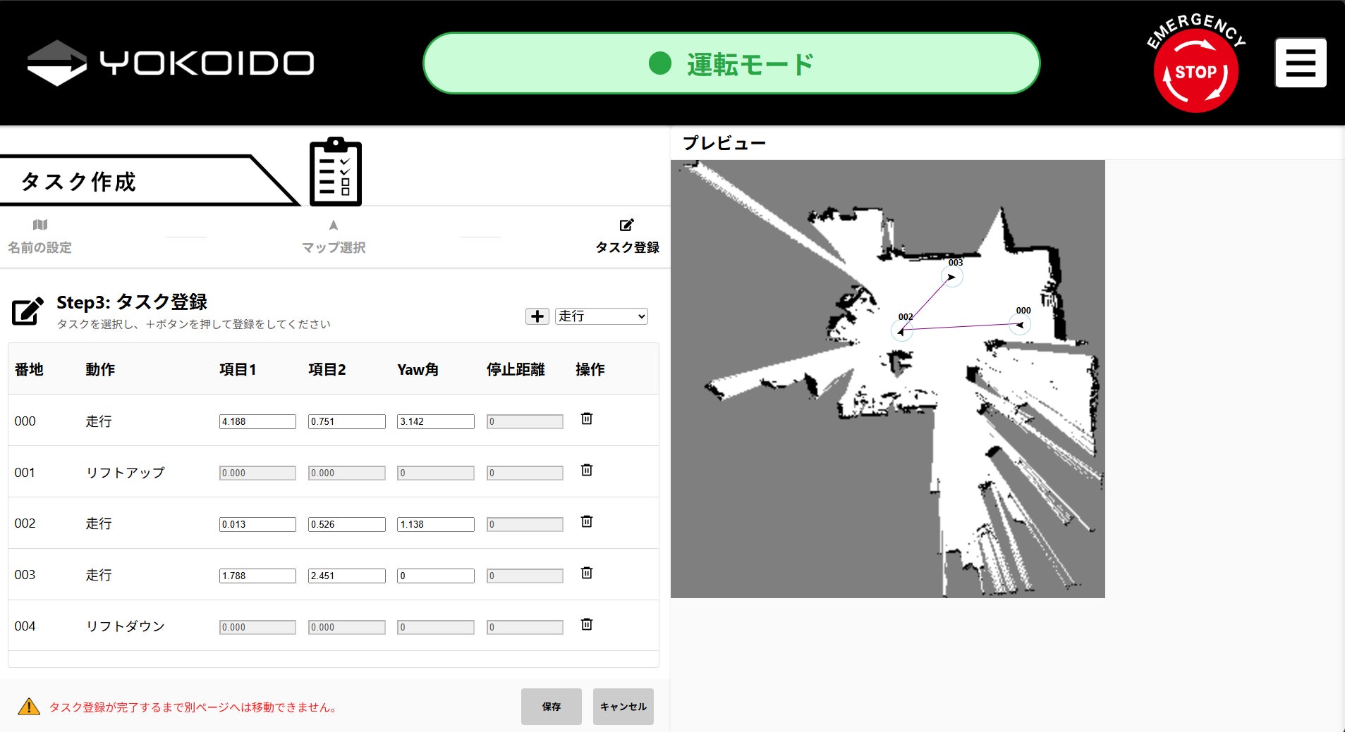 タスクには、走行ルートだけでなく、リフトの上昇や下降といった動作も含めることができます。