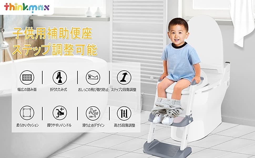 子供の成長に合わせて調節可能な便利さ:Thinkmaxの補助便座、トイトレのステップ式トレーナー