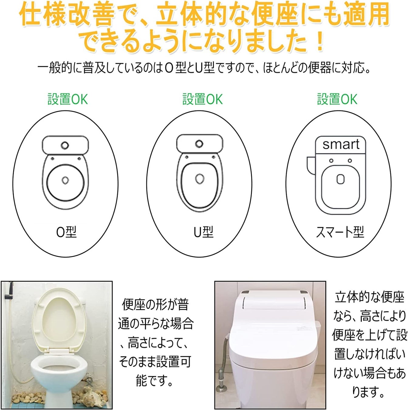 O型、V型、U型のの多数の便器に対応可能です。