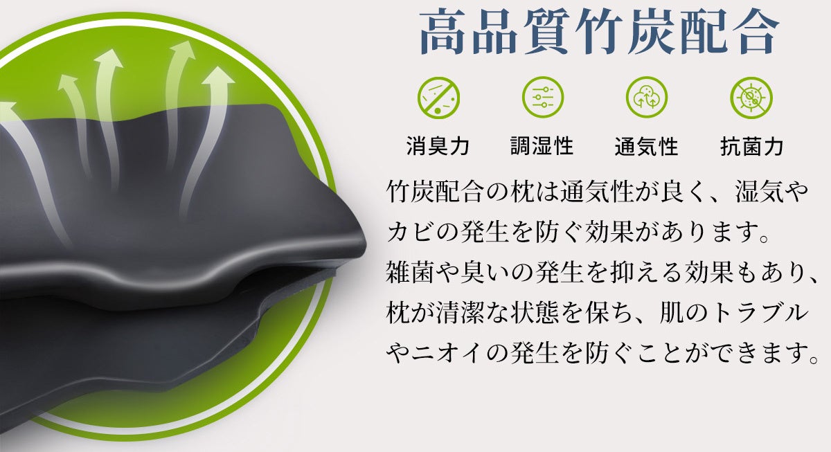 竹炭配合で清潔さと快適さを追求、日本製の高品質低反発枕が特別価格で登場