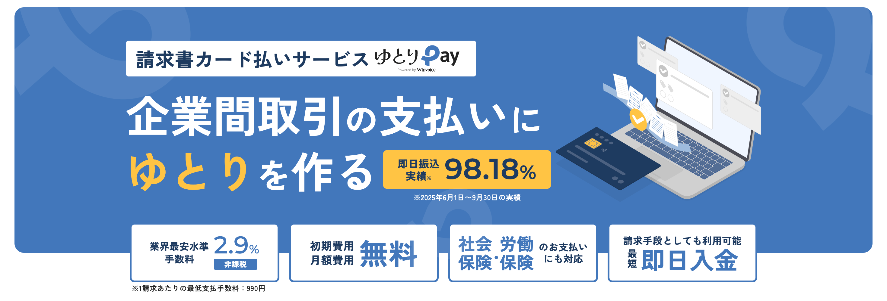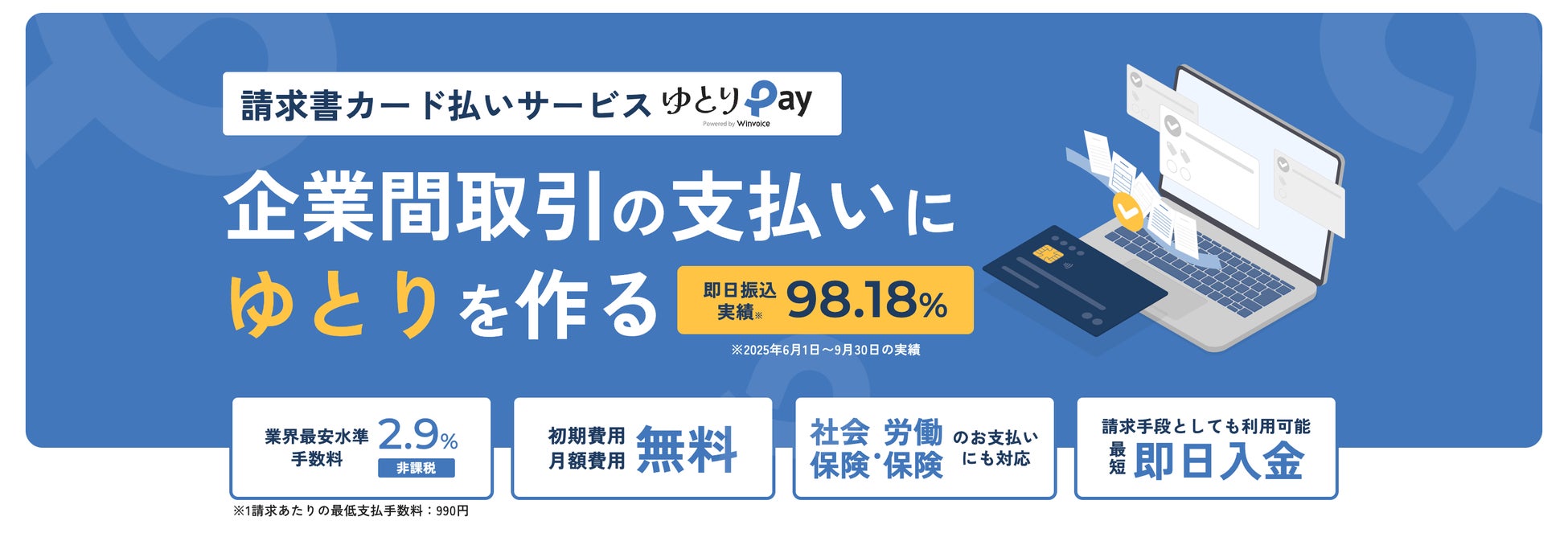 「ゆとりペイ」は、請求書の支払いをクレジットカードで決済できるBtoB決済サービスです。