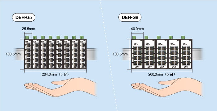 産業用ネットワーク製品を提供するダイヤトレンド株式会社(本社:大阪府大阪市、代表取締役 宮下清哉、以下ダイヤトレンド)は、省スペースと速さを両立した、産業用イーサネットスイッチングハブのローコストモデル「DEH-G5」「DEH-G8」を6月28日(金)に発売開始します。