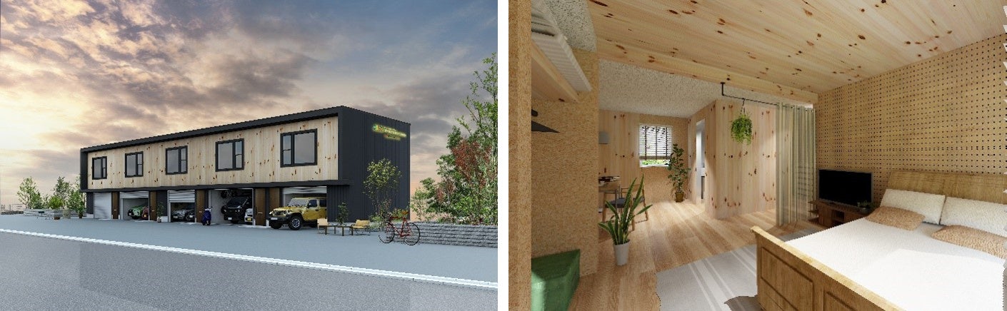 本取組では、ライフデザイン・カバヤ株式会社が開発した国産材からなるCLTを使用したオリジナル構法「LC-core(エルシーコア)構法」を用いた、CLTガレージ付き賃貸住宅商品を共同開発。当社はライフデザイン・カバヤ株式会社が運営するCLT フランチャイズネットワーク本部「⽇本CLT技術研究所」の加盟店として、本商品をガレージ付賃貸住宅「プレミアムガレージハウス」の新商品として展開します。