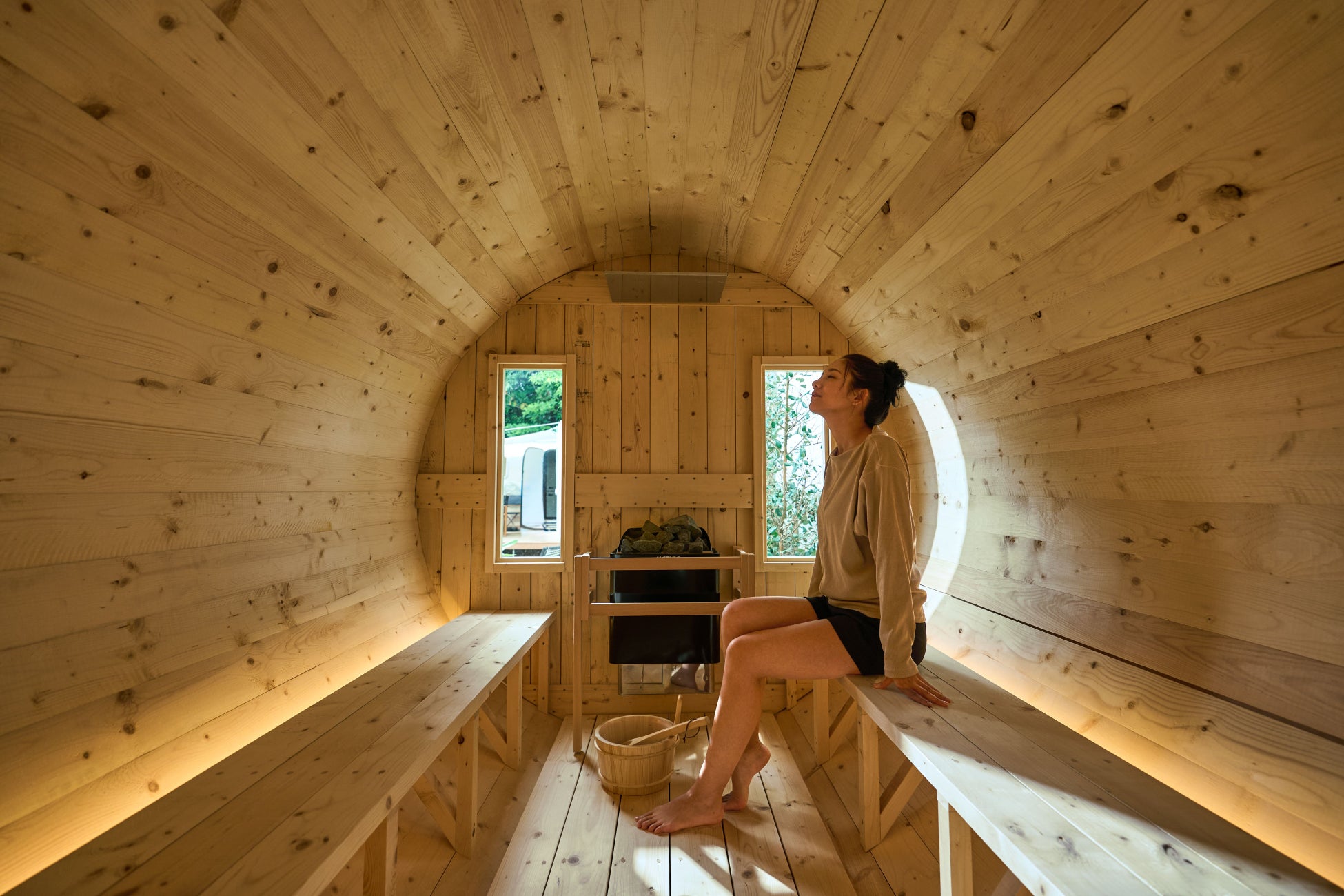 ルーフトップスイートには専用のバレルサウナを完備。エアストリームご宿泊のお客様も2台のバレルサウナを時間貸し切りで自由にお楽しみいただけます。