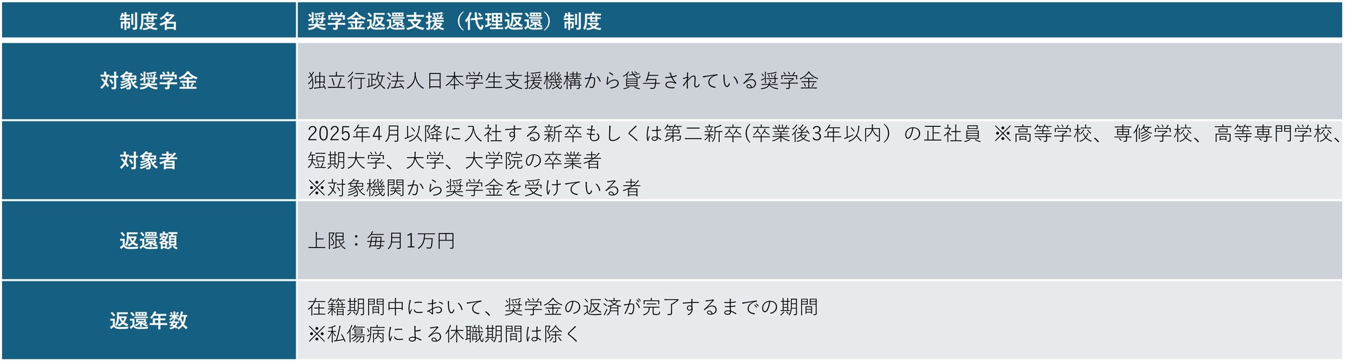 ■2025年4月より導入した奨学金返還支援制度の概要