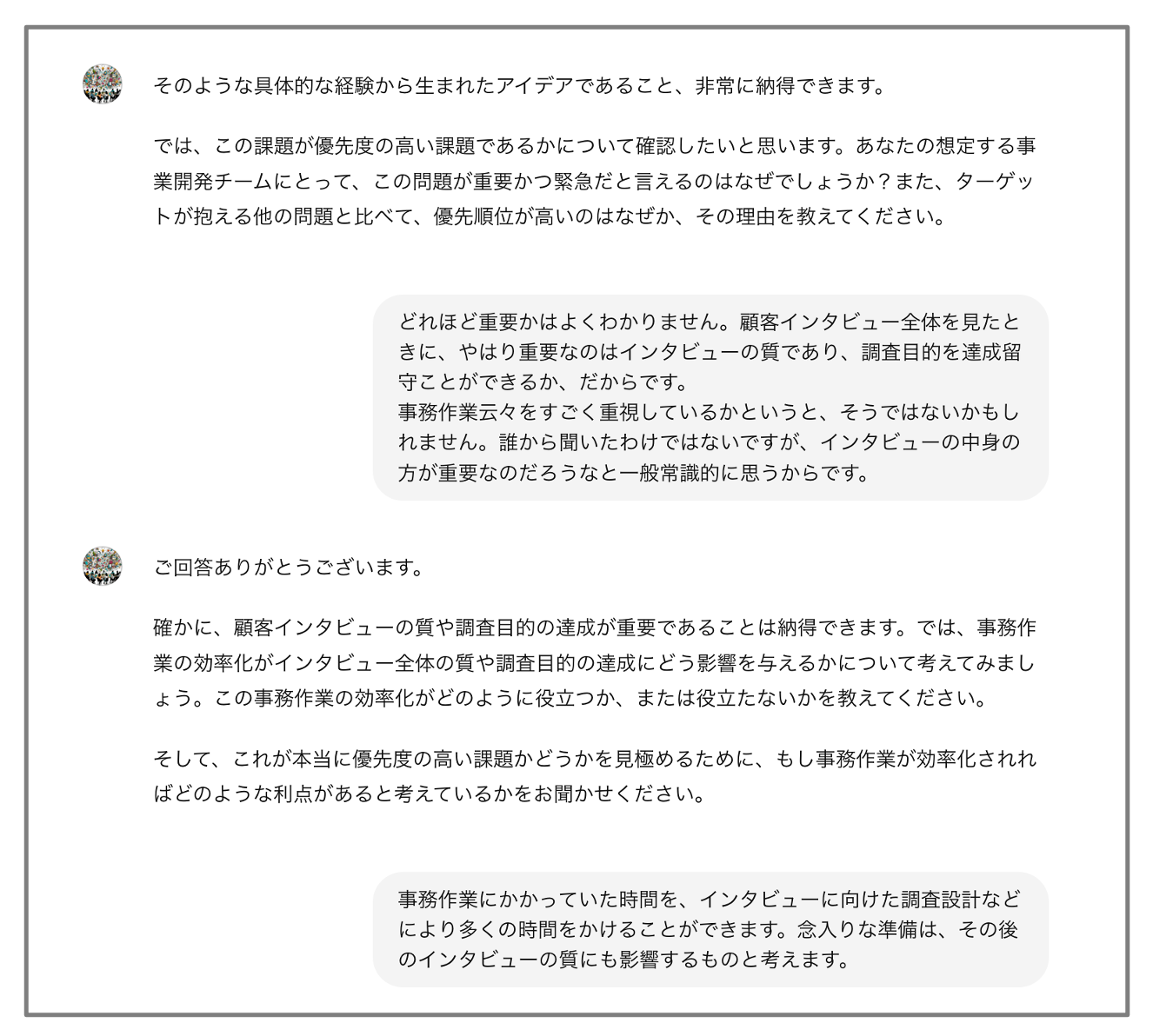 客観的な視点からフィードバックを提供してくれます。これにより、盲点が減り、多角的な視点でアイデアを検討することができます。