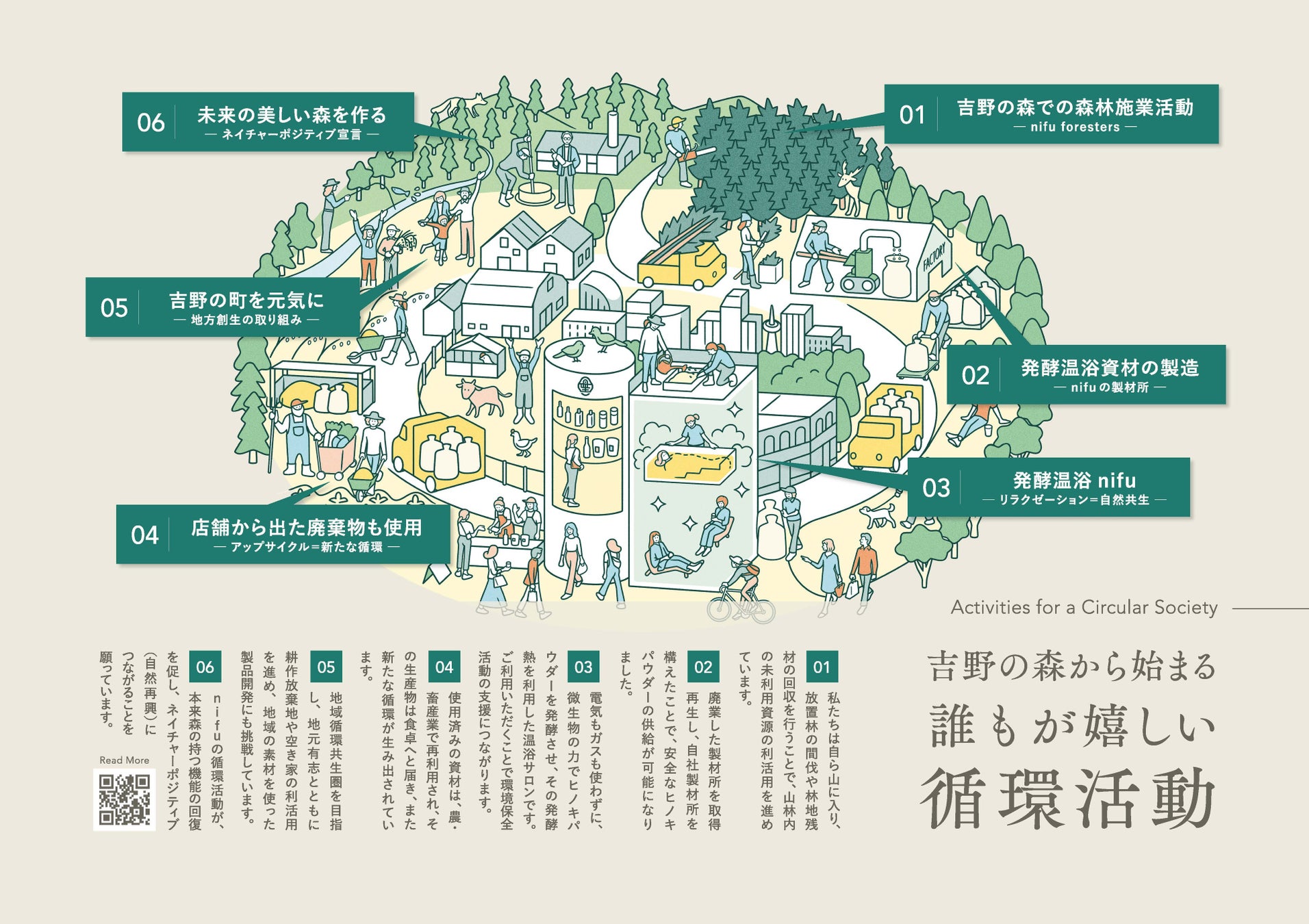 奈良県吉野で進める地域の未利用資源の活用は、全国の中山間地域にも広がる可能性を秘めています。私たちは、都市部で「発酵温浴nifu」を提供することで、地方の課題解決に貢献するとともに、その魅力を多くの人々に伝えていきます。今後は、奈良県吉野にとどまらず、全国各地の山林資源を活かし、より持続可能で価値ある循環を生み出すことに全力で取り組んでまいります。