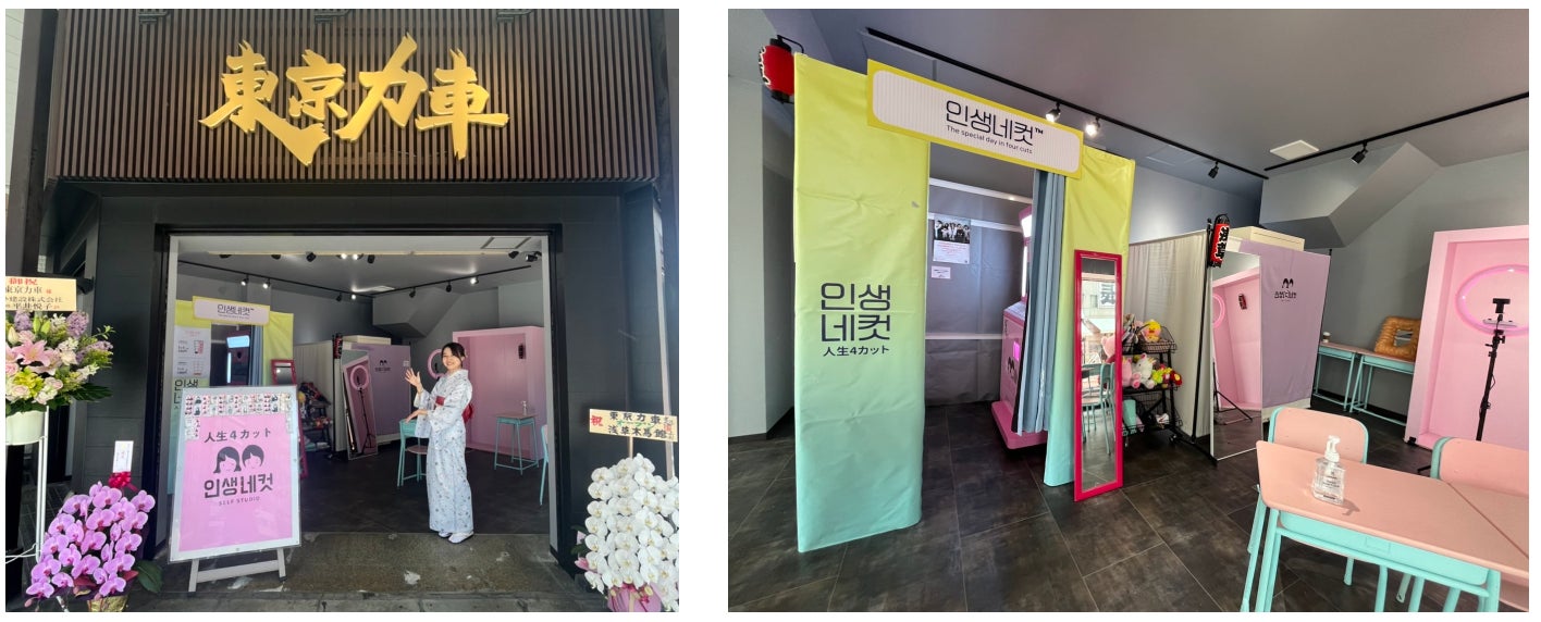 当スポットには、浅草エリア初となる韓国プリント写真機「人生4カット」を設置し、無料で使えるカチュー シャやぬいぐるみなどの撮影アイテムをご用意している他、着物が映えるシンプルな撮影エリ アを備えた無料休憩所も併設しております。また、今後は無料で使えるヘアアイロンなどを備 えたヘアメイクスペースもオープン予定です。