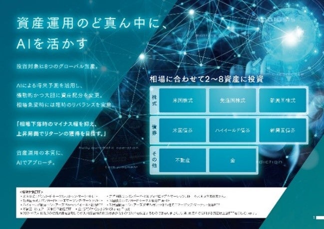販売取扱い会社は証券会社8社、銀行7行に拡大するなど(2024年11月7日時点、予定含む)、大きな注目を集めており、SBI岡三アセットマネジメントとFOLIOは、引き続き相場対応力の高い「AI投資」を実現させ、これからもより多くの皆さまの資産形成に貢献してまいります。
