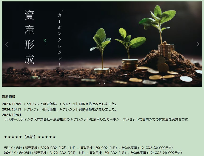 脱炭素化支援株式会社(本社:愛知県名古屋市、代表:松島康浩)が運営する個人向けとして日本初(※2)のカーボンクレジット販売・買取ECサイト「脱炭素貨値両替所」において、日本政府運営のカーボンクレジット「J-クレジット」を資産運用目的で購入・所有していた個人1名が、2024年11月5日に所有している「J-クレジット」を日本で初めて売却を実施しました。